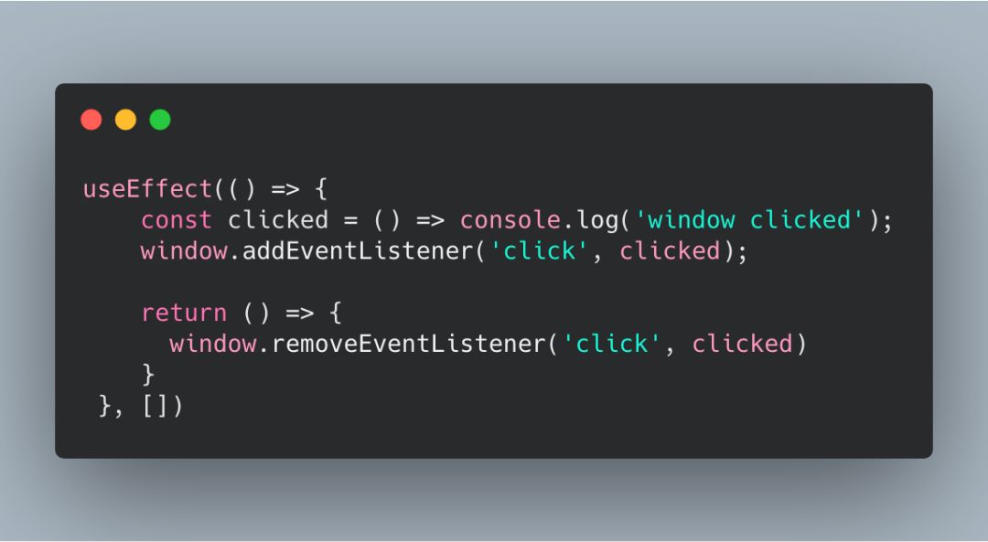 在上面的这个 effect 中,在组件完成渲染后,一个点击事件会被加在整个 window 上。