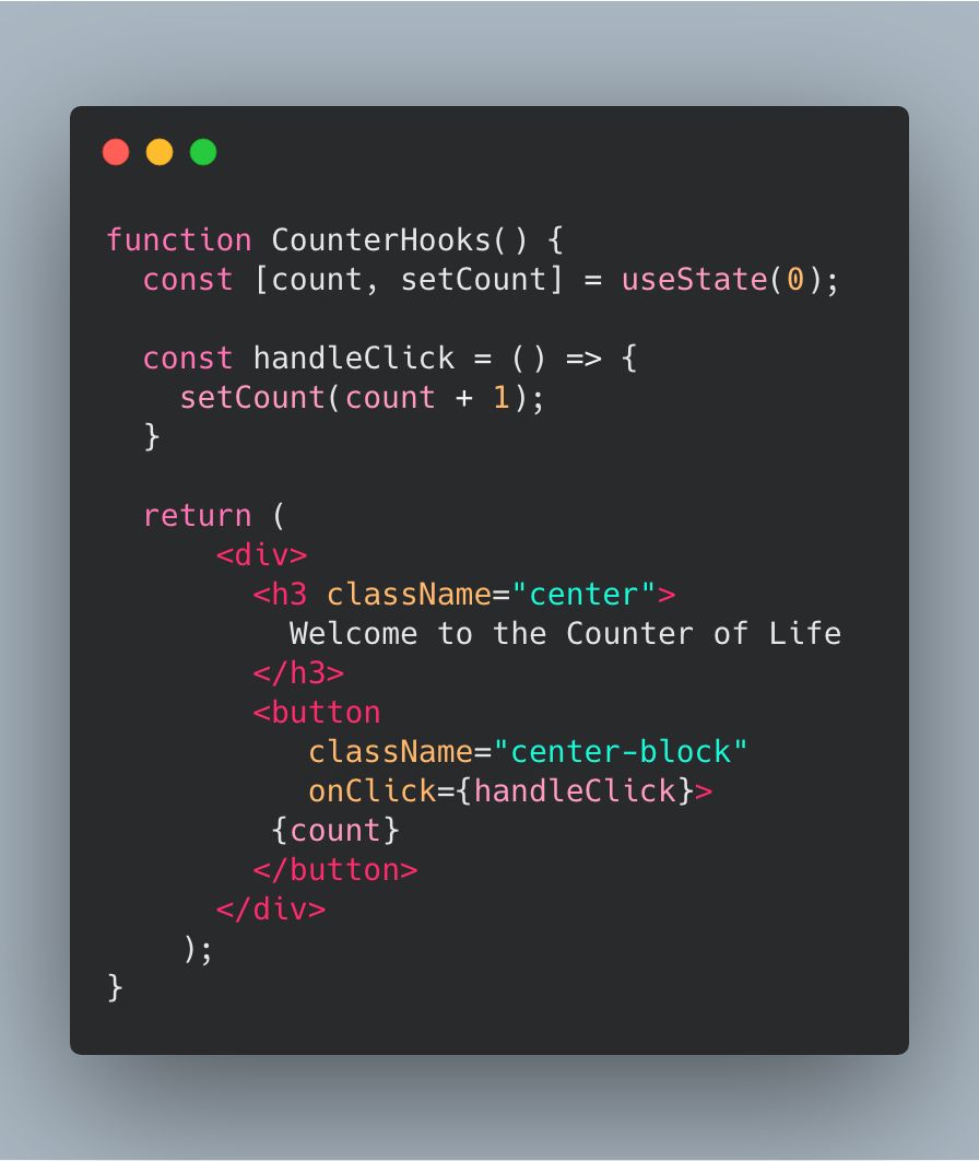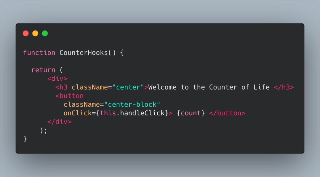 在重构之前,count 变量来自于 Class Component 内部的 state 对象。而在函数式组件中,count 变量即将来自于对 useState 等 hooks 的调用。