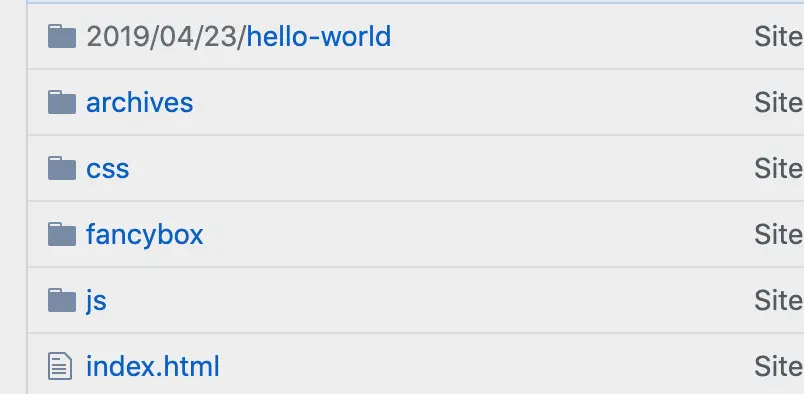 - 部署完后打开 github 可以看到仓库中已经存在本地 hexo 相关文件