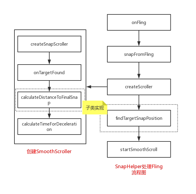 SnapHelper是一个抽象类,实现了RecyclerView.OnFlingListener接口,入口方法attachToRecyclerView在SnapHelper中定义,该方法主要起到清理、绑定回调关系和初始化位置的作用,在setupCallbacks中设置了addOnScrollListener和setOnFlingListener两种回调;