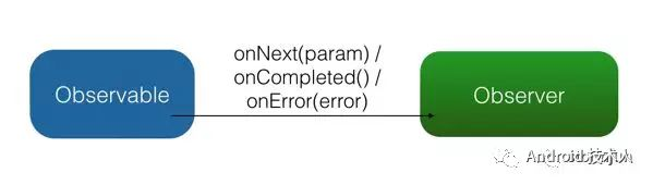 简单来说:Observable 和 Observer 通过 subscribe() 方法实现订阅关系,从而 Observable 可以在需要的时候发出事件来通知 Observer,并且回调 Observer 的相应的方法。