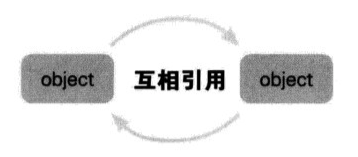 引用计数式内存管理中必然会发生的问题,就是循环引用问题。如果两个对象 A 和 B 互相强引用,那么它们永远不会被释放,即使外界已经没有任何指针能够访问到它们了,它们依然存在,并且互相引用,无法被释放。循环引用容易发生内存泄漏,因为应当废弃的对象在超出其生存周期后继续存在。