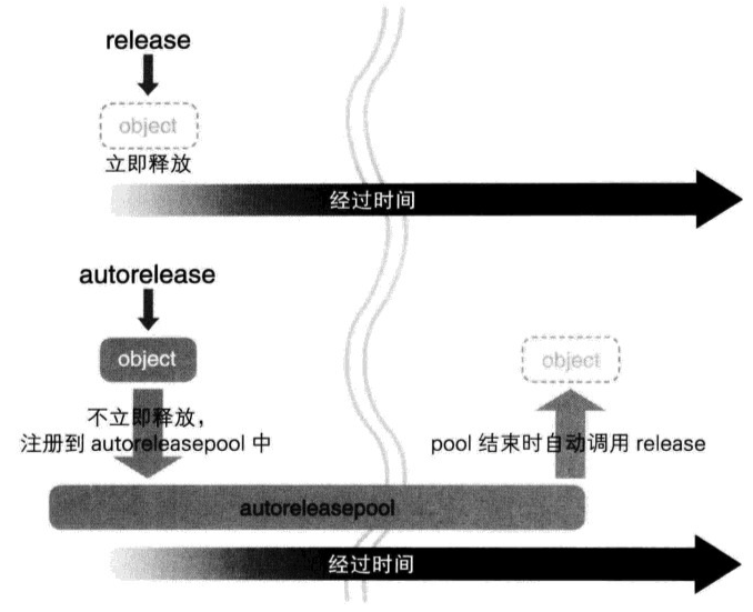 但是有时候我们不知道到底什么时候可以将对象释放,例如作为函数返回值返回时。为了解决这个问题,OC 提供了 autorelease 方法。