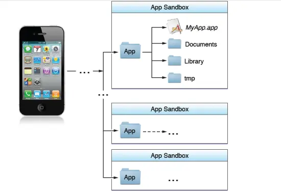 iOS应用程序只能在为该改程序创建的文件系统中读取文件,不可以去其它地方访问,此区域被称为沙盒,所有的非代码文件都要保存在此,例如图像,图标,声音,映像,属性列表,文本文件等。而且