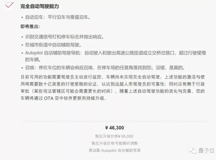 最后,FSD大概会在明年第二季度完全就绪,目前中国能力和售价如下(包含AutoPilot后价格或至74100元):