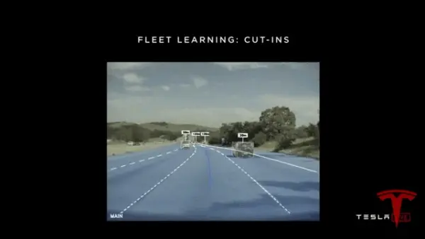 Andrej介绍说,现在特斯拉预测变道的能力越来越强,已经记录了900万次成功换道,就是影子测试不断训练神经网络后的效果。