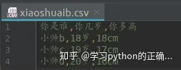 writer.writerow({'你是谁': '小帅c', '你几岁': '19岁', '你多高': '17cm'})