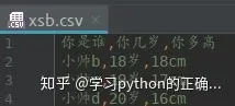 writer.writerow({'你是谁': '小帅d', '你几岁': '20岁', '你多高': '16cm'})我们这里以字典的方式写入数据到 xiaoshuaib.csv 这个文件中