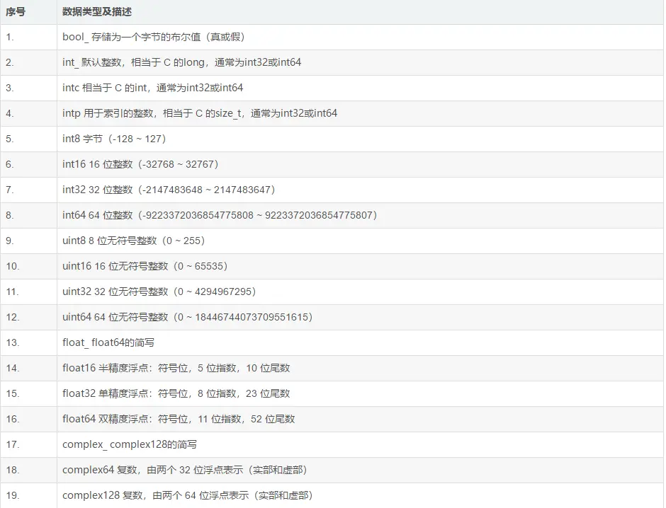 附 NumPy 中定义的不同标量数据类型:
