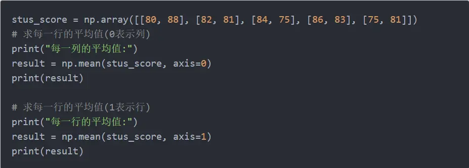 指定轴平均值mean