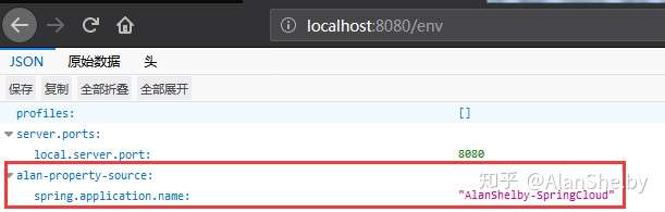 重启项目,在 http://localhost:8080/env 中查看结果,结果也是和我们所期望的是相同的:
