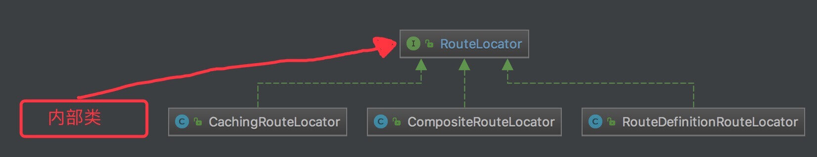 - 自定义的 RouteLocator ,通过内部类实现,类图暂时不好体现。