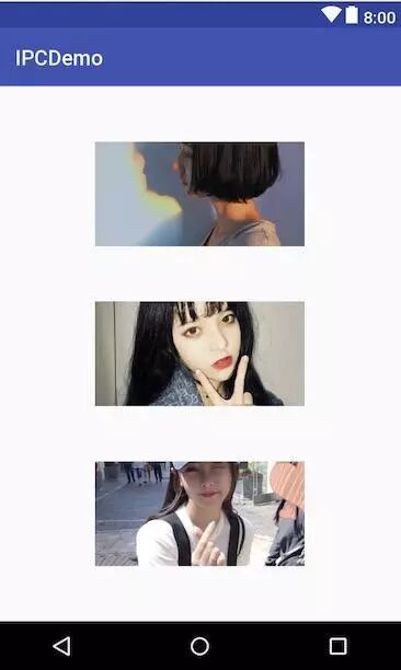 <android.support.constraint.ConstraintLayout xmlns:android="http://schemas.android.com/apk/res/android" xmlns:app="http://schemas.android.com/apk/res-auto" android:layout_width="match_parent" android:layout_height="match_parent"> <!-- 在第一个控件设置chain_style,第一个和最后一个ImageView也要设置 好约束,上下控件也要互为约束 --> <ImageView android:id="@+id/iv_beauty" android:layout_width="200dp" android:layout_height="100dp" android:scaleType="centerCrop" android:src="@drawable/beauty" app:layout_constraintBottom_toTopOf="@+id/iv_girl" app:layout_constraintLeft_toLeftOf="parent" app:layout_constraintRight_toRightOf="parent" app:layout_constraintTop_toTopOf="parent" app:layout_constraintVertical_chainStyle="spread" /> <ImageView android:id="@+id/iv_girl" android:layout_width="200dp" android:layout_height="100dp" android:scaleType="centerCrop" android:src="@drawable/girl" app:layout_constraintBottom_toTopOf="@+id/iv_biu" app:layout_constraintLeft_toLeftOf="parent" app:layout_constraintRight_toRightOf="parent" app:layout_constraintTop_toBottomOf="@+id/iv_beauty" /> <ImageView android:id="@+id/iv_biu" android:layout_width="200dp" android:layout_height="100dp" android:scaleType="centerCrop" android:src="@drawable/biu" app:layout_constraintBottom_toBottomOf="parent" app:layout_constraintLeft_toLeftOf="parent" app:layout_constraintRight_toRightOf="parent" app:layout_constraintTop_toBottomOf="@+id/iv_girl" /></android.support.constraint.ConstraintLayout>