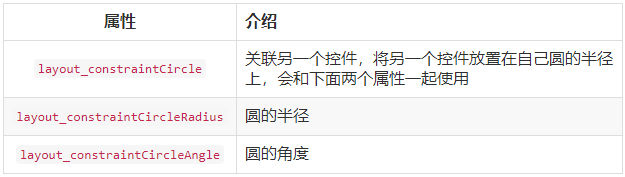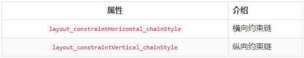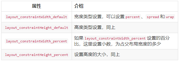 对于和left、right相似的start、end基础的属性,这里不再赘述,大家可以自行查阅。当然了,除了一些基础的属性,ConstraintLayout也有自己特有的属性,这里向大家介绍一下常用的属性: