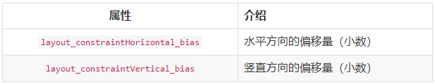 app:layout_constraintHorizontal_bias="0.1"代表水平方向往右偏移10%,app:layout_constraintVertical_bias="0.2"代表竖直方向往下偏移20%。这里需要注意的是: