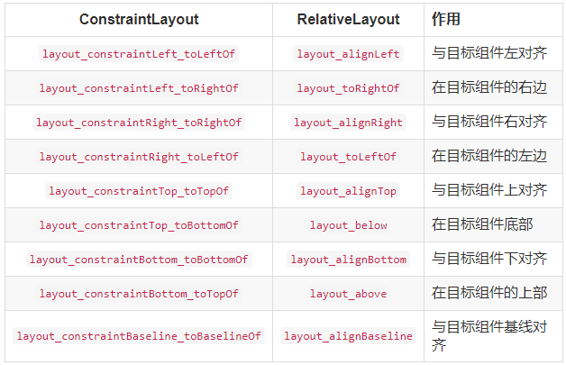 这里我们先学习一下属性的使用,从基础属性开始吧。如果我直接讲这个属性有什么用可能不是特别清楚,这里我会将这些基础的属性和同类型的RelativeLayout属性进行比较: