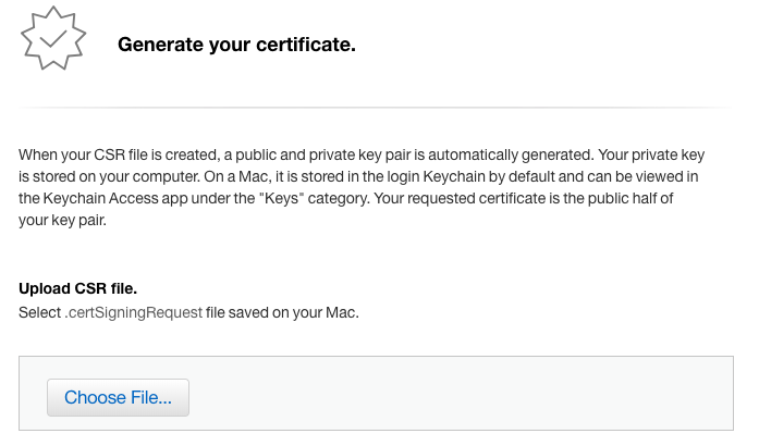 1.2.2 点击Create Certificate,然后上传1.1步骤生成的CSR文件即可