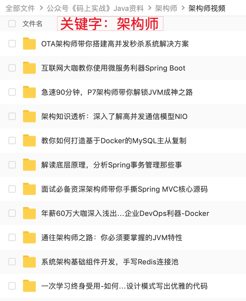 发现这个面试视频不错,分享给大家,公众号回复: 面试视频 和 架构师