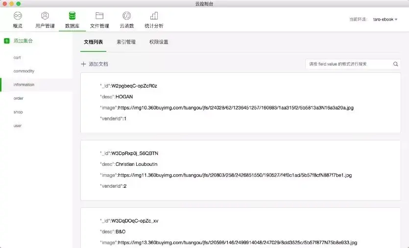 数据集建立起来后,再往里面填充一些假数据,基本的数据就有了,那么在小程序中如何进行数据交互?