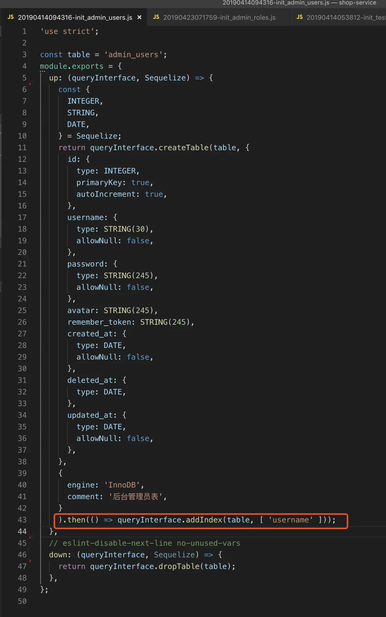 1.2、根据sequelize的官方文档,如果创建唯一索引的话,