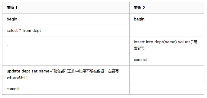 不可重复读:不可重复读是指在对于数据库中的某条数据,一个事务范围内多次查询返回不同的数据值(这里不同是指某一条或多条数据的内容前后不一致,但数据条数相同),这是由于在查询间隔,该事物需要用到的数据被另一个事务修改并提交了。不可重复读和脏读的区别是,脏读是某一事务读取了另一个事务未提交的脏数据,而不可重复读则是读取了其他事务提交的数据。需要注意的是在某些情况下不可重复读并不是问题。