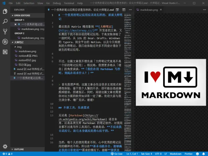 不过,这篇文章我不想先谈「大师笔记究竟是不是一个好的笔记应用」。相反地,我想更多地从「理念」的角度谈谈:我们在用 Markdown 写作时,到底在追求什么?