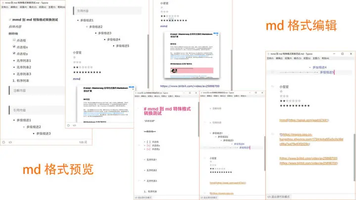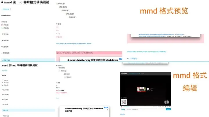 为此,我专门测试了所有 mmd 与通用 md 格式中不同或增广的语法格式,把它们写成一个文档,并导出成 md 格式。