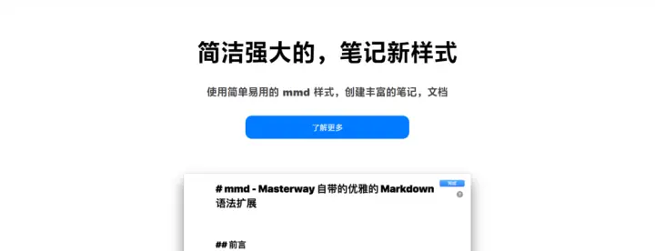 大师笔记在对 Markdown 语法做一定修改、扩展的基础上,推出了自家的 mmd 语法(也包括 mmd 格式的文件)。它的开发者是这样描述 mmd 的设计理念的: