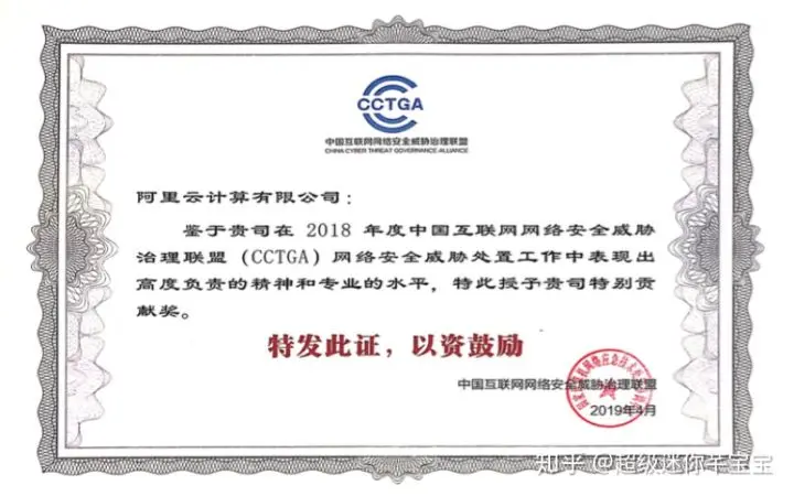 4月16日,由国家互联网应急中心(以下简称“CNCERT”)主办的《2018年我国互联网网络安全态势综述》发布会在京举行。会上,中国互联网网络安全威胁治理联盟对2018年在网络威胁处置中做出贡献的单位进行了表彰,阿里云连续两年获得特别贡献奖。