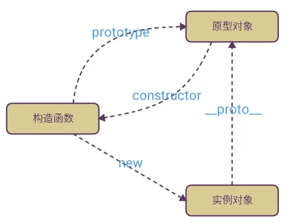 构造函数,实例对象,原型对象三者的关系图: