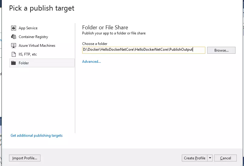 点击Create Profile按钮,回到VS窗体中如图所示页面: