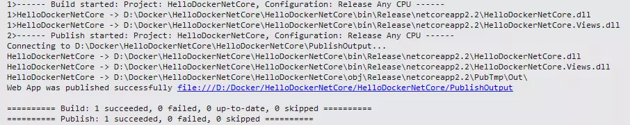 点击Publish按钮,开始Publish当前应用程序,成功Publish之后,会在VS Output中看到如图所示的信息: