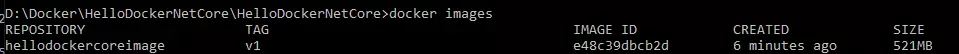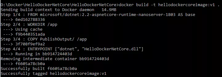 docker build -t hellodockercoreimage:v1 . 如图所示: