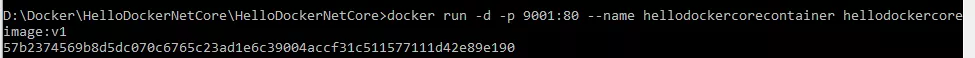 该指令表达的意思是基于hellodockercoreimage:v1镜像在detached模式下运行一个名为hellodockercorecontainer的容器,并且将宿主机器的9001端口与容器的80端口进行映射