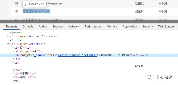 每一条美剧的信息,都包裹在 tr 标签下,而且 tr 标签的特点就是 class 里面含有 Scontent 字段。