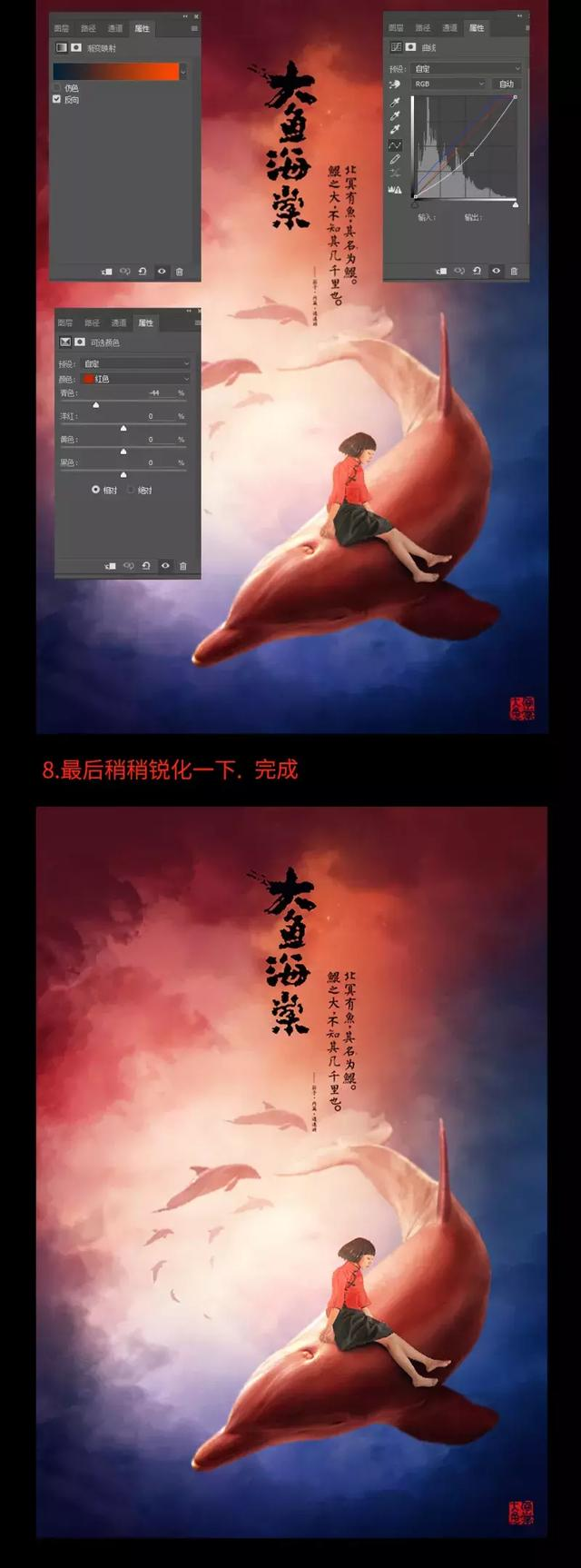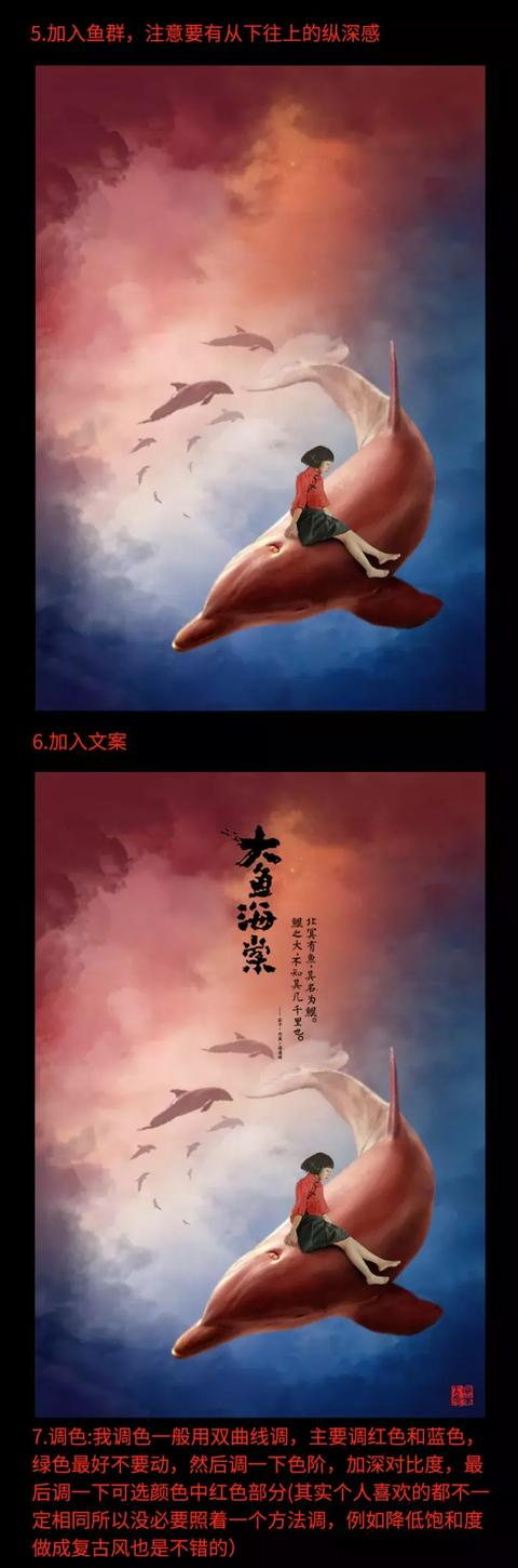 PS教程:大神教你用PS制作《大鱼海棠》海报 地球外星人君 2019-04-24 467 阅读1分钟 本来做的是一千左右像素的,但最后粗心让我存成500几px的了,可能会有点不清楚,唉,忙活这莫久竟然不敌最后一步的粗心呀 教程有千千万,但跟着作就好像是以前幼儿园老师拿着你的手写字,你可能连字都不用看,我这里就说一下流程,然后把素材发的下边,大家一边做一边改进,用自己的方法,做出来的很可能会更好 来源:站酷 作者:tt羽化