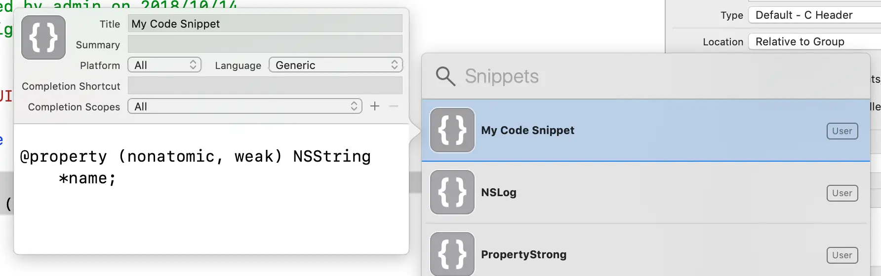 Code Snippets 要真正发挥作用就要符合使用者的使用习惯,而符合使用者使用习惯的当然就是使用者自己创建的修改的代码片段。所以Code Snippets的创建修改也就非常重要了,通过长时间的积累的,使用者就可以有一个非常贴合自己使用习惯的代码片段库,极大提高编码效率。而如果能够做得更好,根据一定规范创建修改代码片段,然后通过git之类的进行管理,多人共用,可以使代码库更为丰富,更为快速完善,例如一个公司内的ios开发都使用同一个代码片段库。