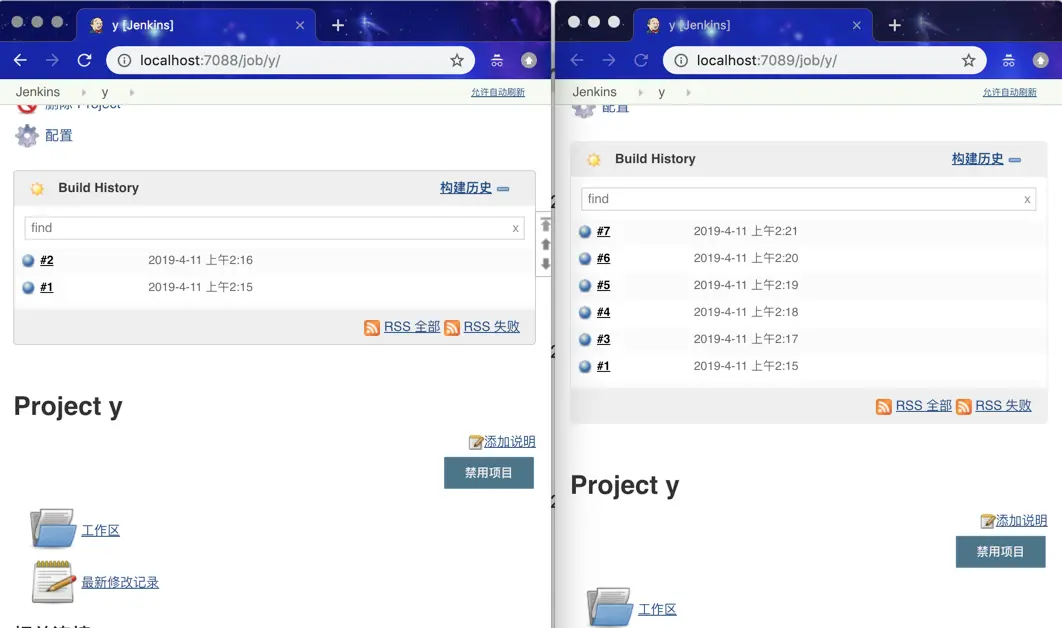 当两个 Jenkins 启动完成后,接下来开始做实验。