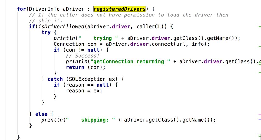 这也是在DriverManager中的一个方法,实现了找到一个能用的就返回。