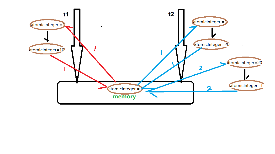 // 主内存atomicInteger初始值为1