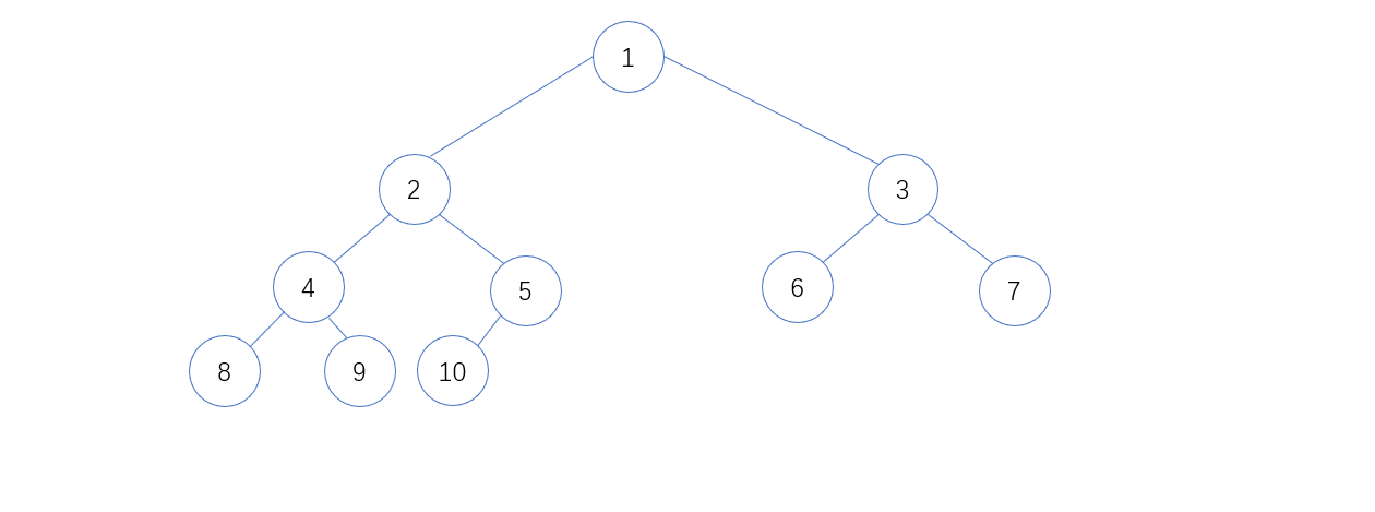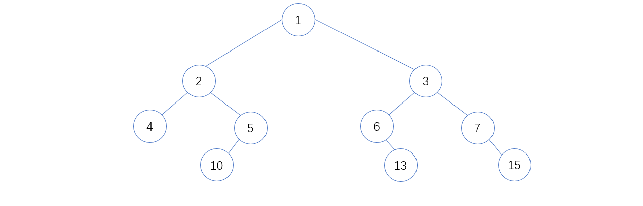 如果一棵二叉树有n个结点,深度为k,它的每一个结点都与高度为k的满二叉树中编号为1~n的结点一一对应,则称该树为完全二叉树。如下图: