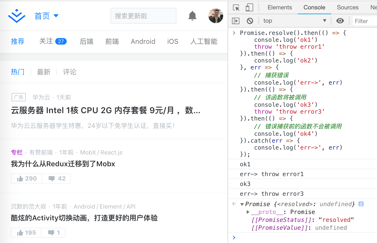 console.log('err->', err)