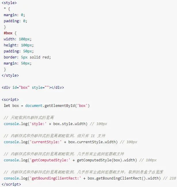 dom节点.style.width/height (only get the "embedd style" width/height)