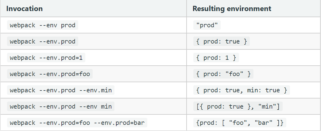 webpack --env.production # 设置 env.production == true