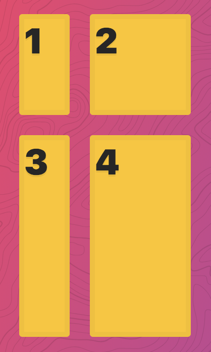 grid-template-columns,grid-template-rows创建的在开发者工具上是虚线,而非明确创建的看图上1、3,2、4之间的是点线。 - 自动创建的行的高度是item本身的高度。如果同一行的两个item高度不一致则会采用高度高的item作为当前行的高度。