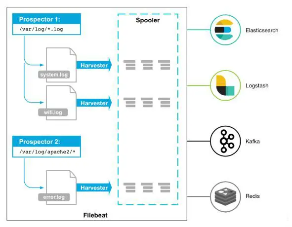 Filebeat 的应用范围十分有限,所以在某些场景下我们会碰到问题。例如,如果使用 Logstash 作为下游管道,我们同样会遇到性能问题。正因为如此,Filebeat 的范围在扩大。开始时,它只能将日志发送到 Logstash 和 Elasticsearch,而现在它可以将日志发送给 Kafka 和 Redis,在 5.x 版本中,它还具备过滤的能力。