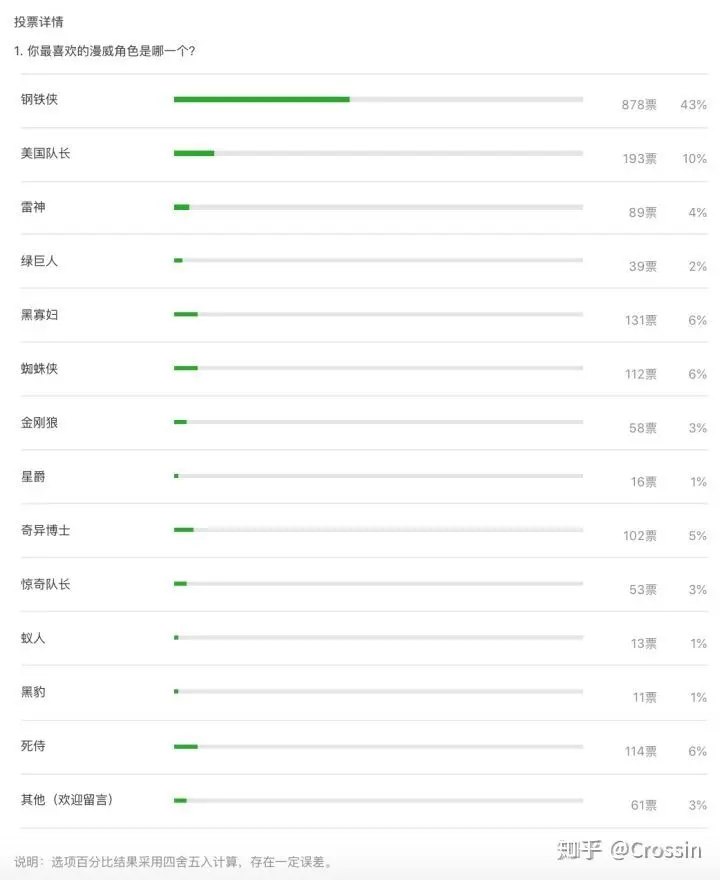 仅就我这边的采样来看,钢铁侠在国内是无法撼动的人气王。当然,这可能因为国内更多是漫威系列电影观众。