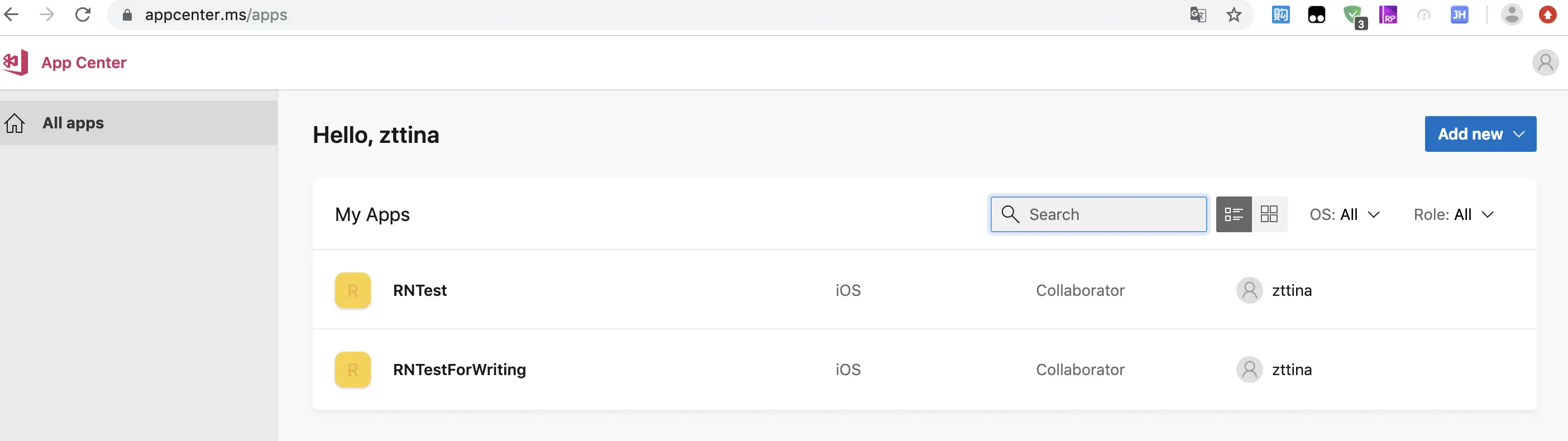 5. CodePush添加app。