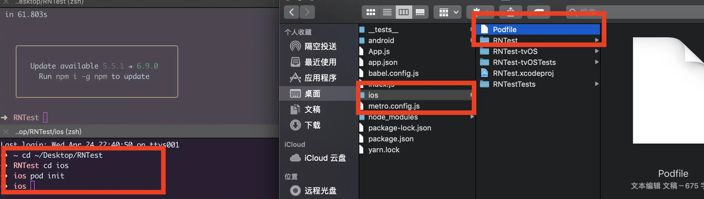 2. 进入ios文件夹,创建Podfile