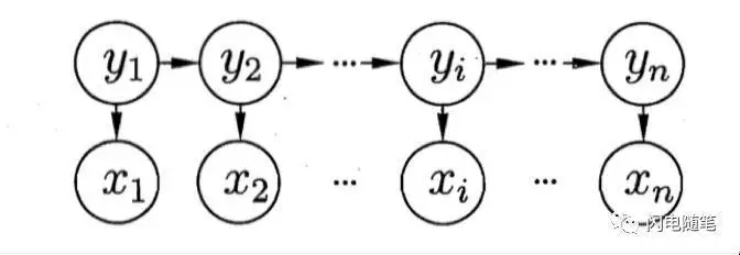 图中的箭头表示了变量间的依赖关系。隐马尔可夫模型是建立在这样的前提下的:在任一时刻,观测变量的取值仅依赖于其对应的状态变量,即由